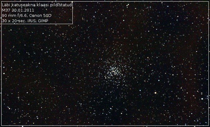 Minu omad on ikka läbi teleskoobi. Esimesed on TAL-2 ja 2 viimast, IMG_6380-sml-1ja see M37 on 90 mm refraktoriga. Refraktori monteeringuks on CG-5. Pildid on tehtud kõik samast aknast ja keset silmipimestavat valgusreostus. :)