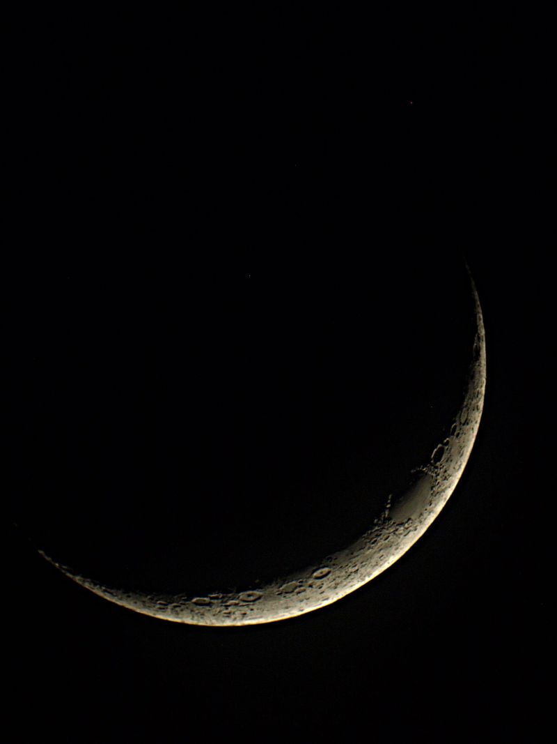 • Pööra suurt tähelepanu teravustamisele - sinu eelnevalt postitatud pildi mastaabi korral peaks Kuu kraatritega kaetud olema. Muuda kas binokli või fotoaparaadi fookust VÄHEHAAVAL (ja lihtsuse huvides ühepalju) korraga, iga muutmise järel tee pilt. Hakka peale udusest kujutisest, kui sa samm sammult fokuseerides pilte teed, proovi saavutada olukord, kus kujutis läheb üha paremaks ja paremaks, kuid siis järgmise paari teravustamisega juba kehvemaks. Siis sa tead, et sa oled parimast fookusest üle sõitnud ning saad lihtsalt üles otsida, milline see parim fookuse koht siis oli.