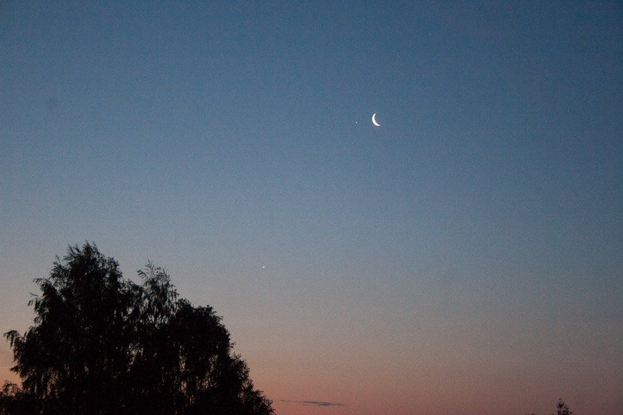 Segastel asjaoludel ma täna poole nelja paiku ei maganud. Vaatasin hoopis korraks aknast välja ning märkasin, et Kuul on suisa kaks sulast - üks päris külje all ning teine veidi kaugemal ja madalamal. Mis seal pikalt mõtelda - fotokas välja ja klõpsima. Tulemus oli selline: