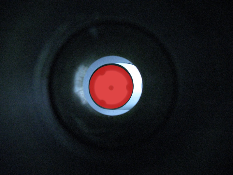 Vaata nüüd kaanes olevast august sisse ja aja suure peegli keskel olev täpp nö pildi keskele. Keera peegli stopperkruvi kinni.