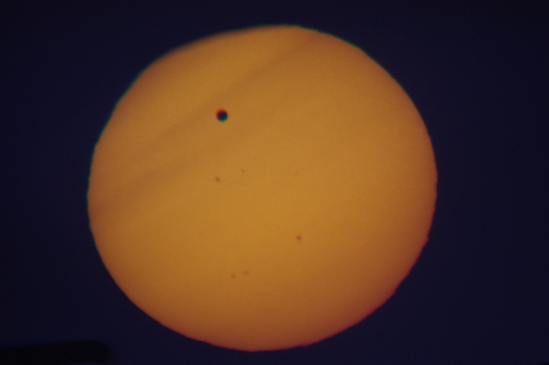 Nüüd on Veenuse üleminek ka teist korda nähtud (ja ka pildistatud - http://www.obs.ee/cgi-bin/w3-msql/vaatl ... aasta=2004). Pilt on tehtud Tartu maakonnas kell 06.56.45 aparaadiga Canon EOS 40D ja miski vene toruga.
