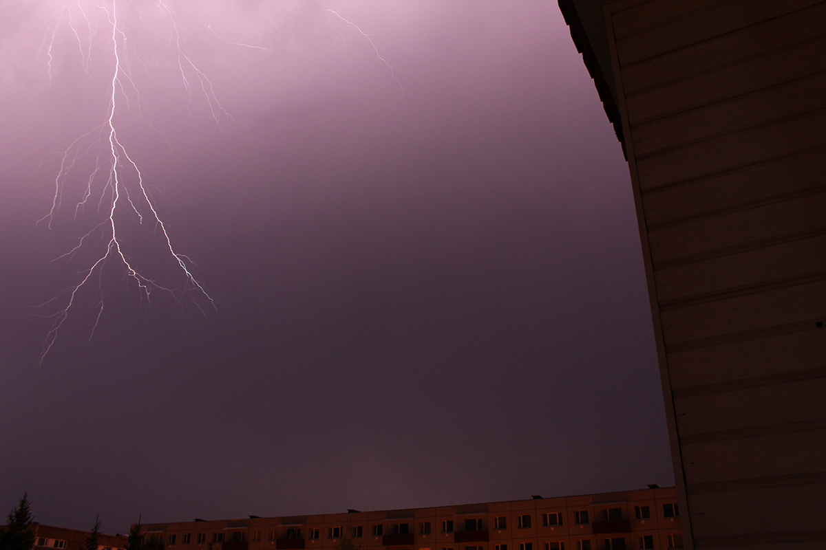 pilt on kahjuks photoshopitud, kuna hakkasin välgu hetkel sätteid muutma ja kaamera nihkus tsipa (näha kõige keskel oleva posti järgi.) õnneks välk oli säri lõpus, jäi ta terav