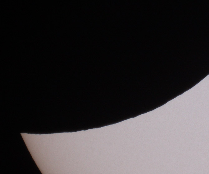 Niimoodi nägi välja päikesevarjutus läbi teleskoobi TAL-2, näidatuna valgele ekraanile. Pildistamiseks kasutasin telefoni Nokia E51 kaamerat, kell näitas 12:53 Ida-Euroopa suveaja järgi: